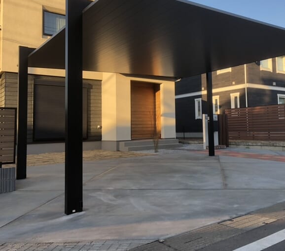 駐車場土間コンクリートの養生まで終わりまして外構工事完了となります。