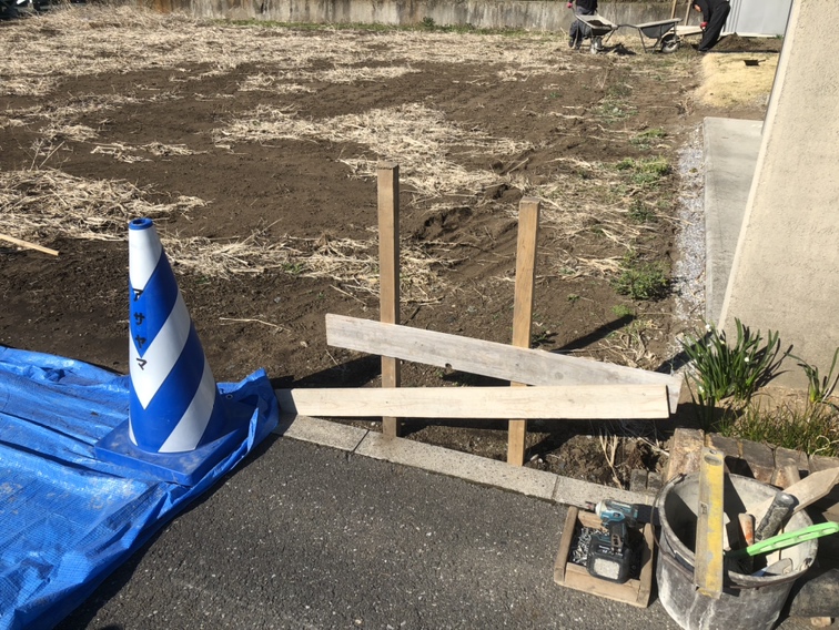本日より境界工事着工となります。丁張りを掛けて手掘り作業より作業開始です。