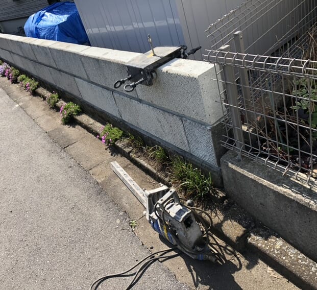 フェンスの柱用の穴明けとなります。作業準備をしてコア穴明け作業開始です。