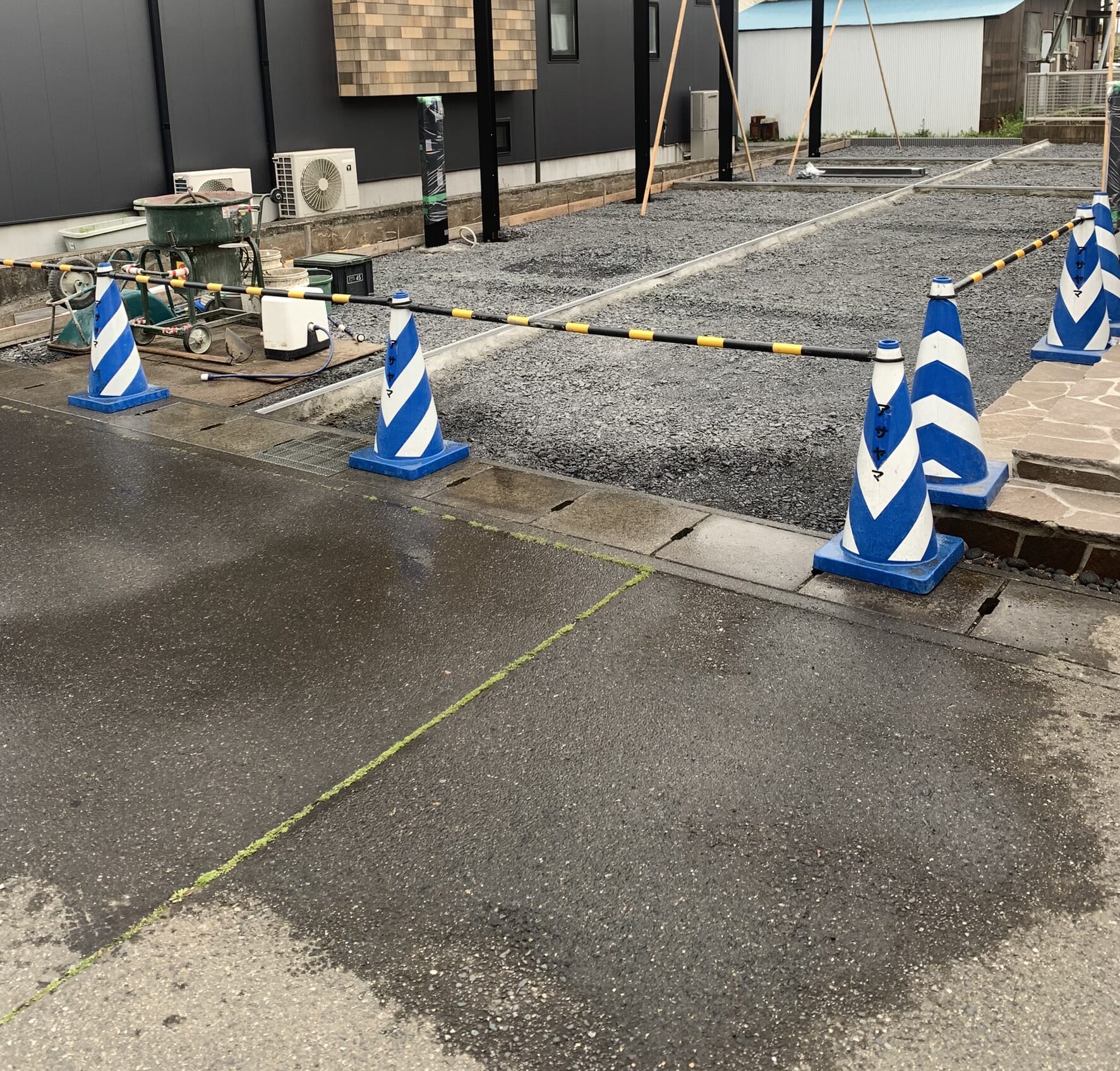駐車場土間コンクリートの養生となります。