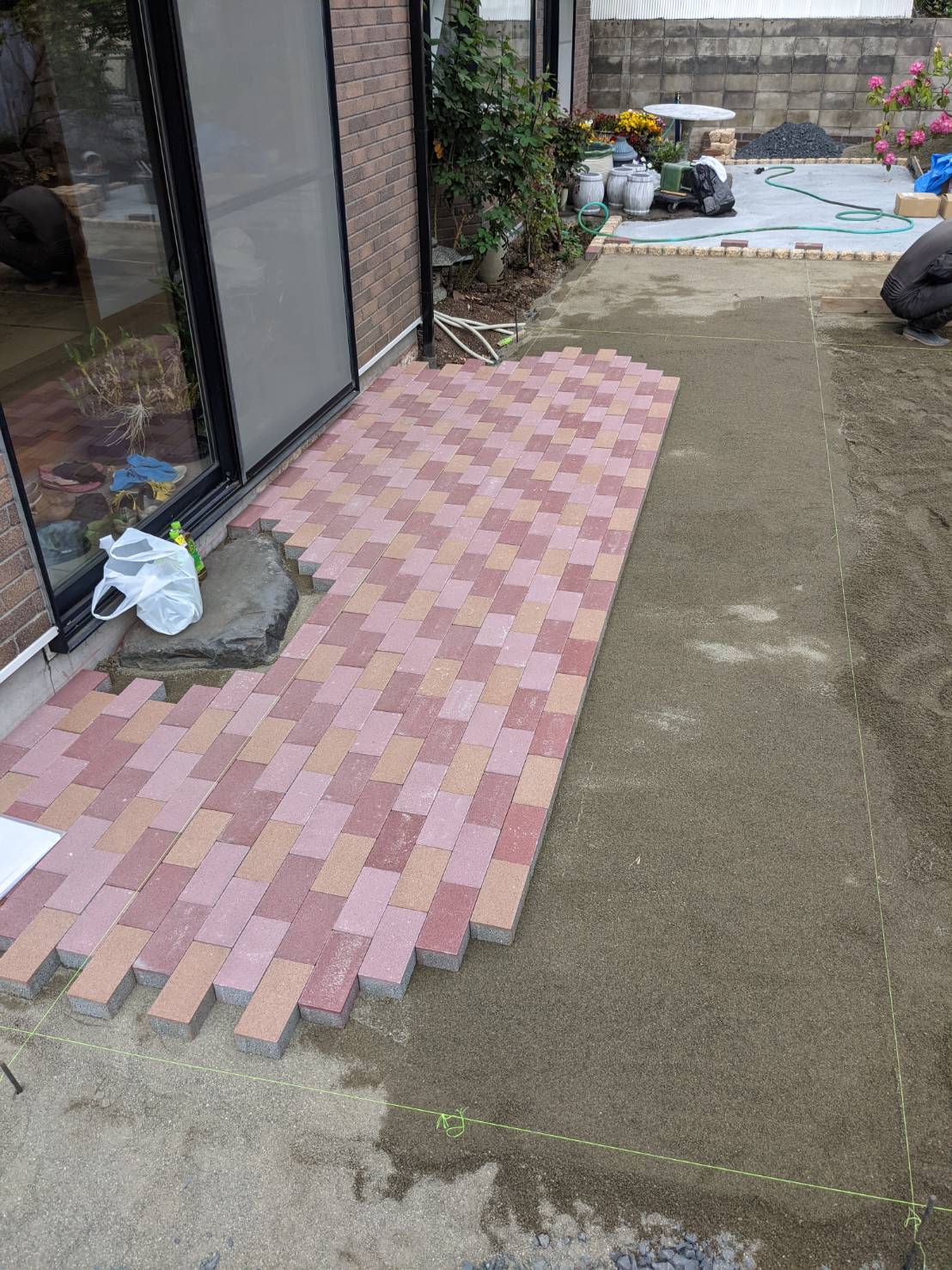 インターロッキング貼り作業です。