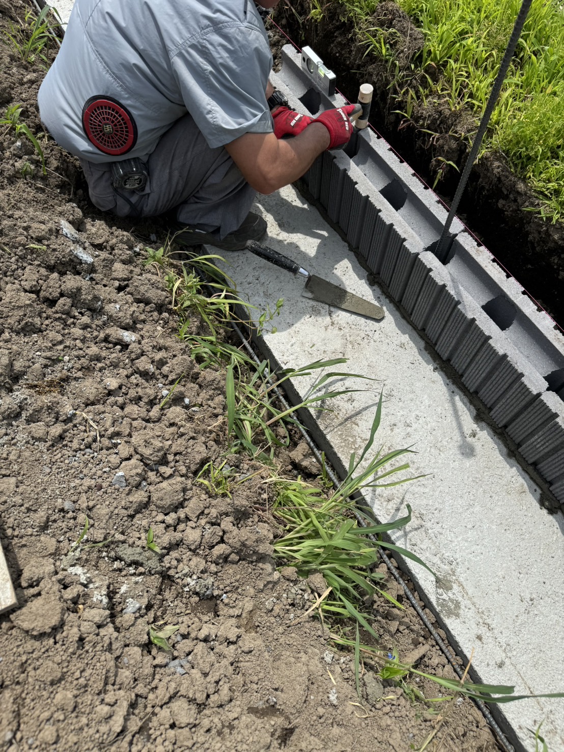 ブロック積み作業です。