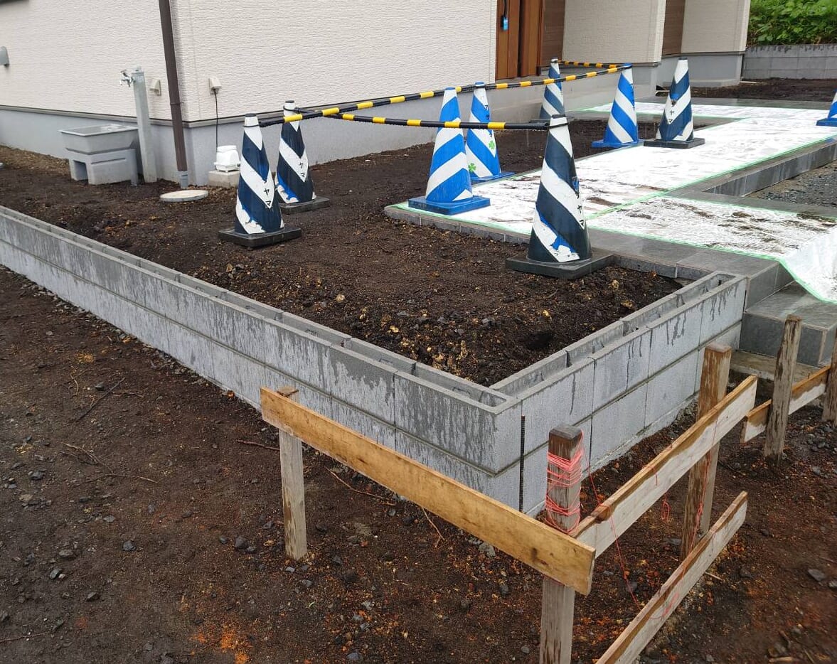 お庭側のブロック積み作業となります。