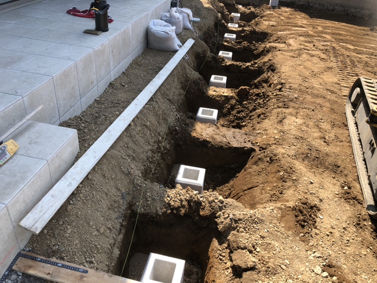 フェンス基礎石の設置となります。