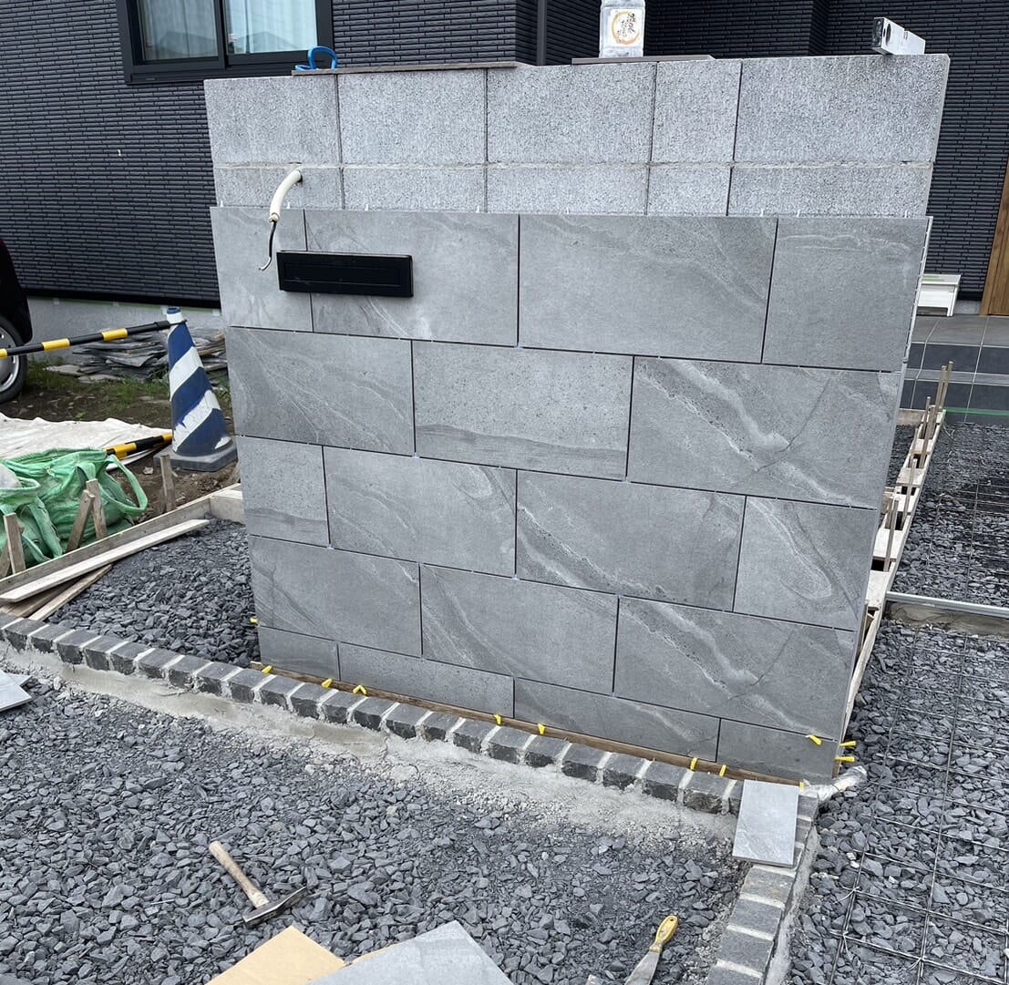 門袖タイル張り作業状況です。