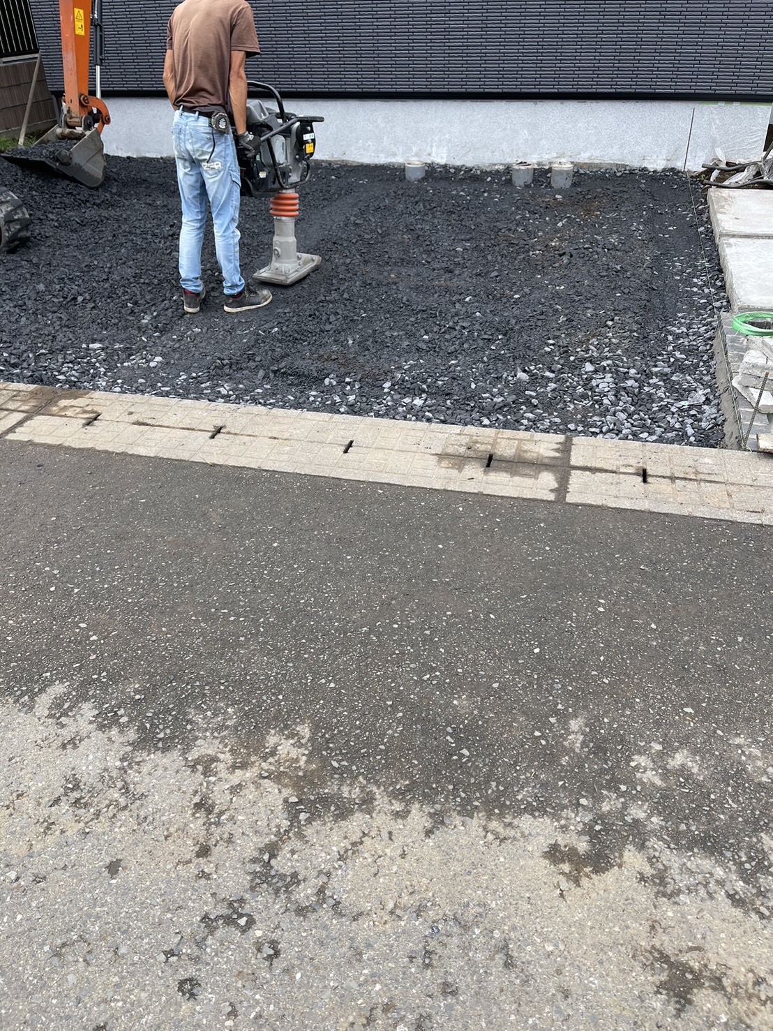 駐車場土間下地砕石転圧です。