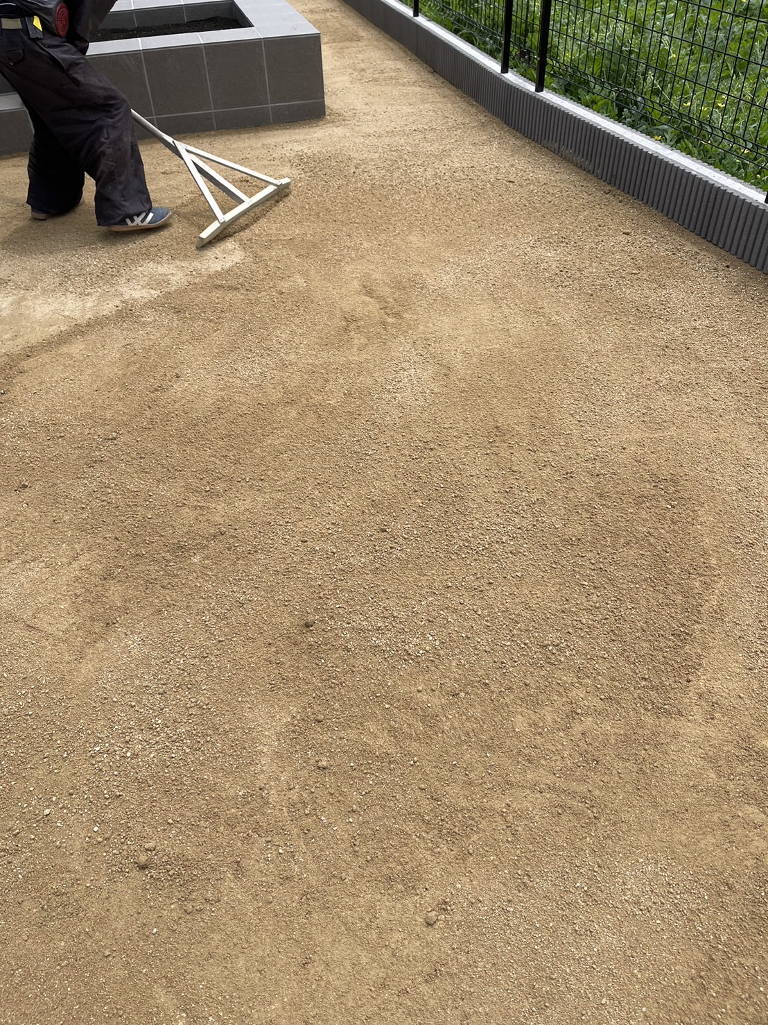 お庭の山砂敷きです。