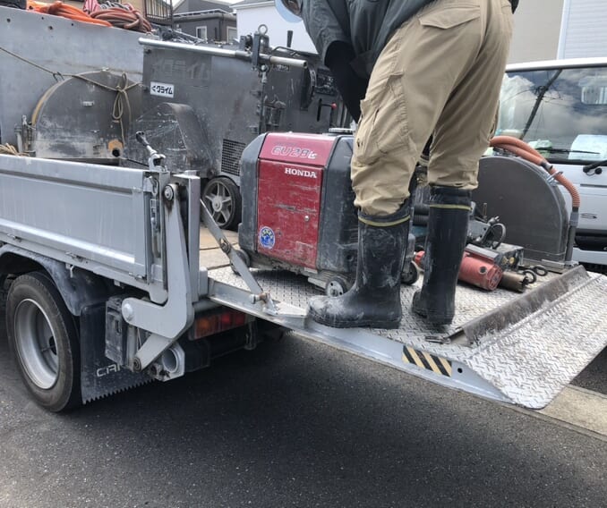 本日より工事着工です。既存のブロックへの柱のコア穴明けの準備となります。 | ホームエクステリア『アサヤマ』