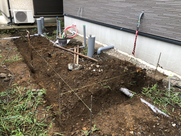 エコキュート設置の為の犬走りコンクリート先行工事となります。本日より工事着工です。 | ホームエクステリア『アサヤマ』
