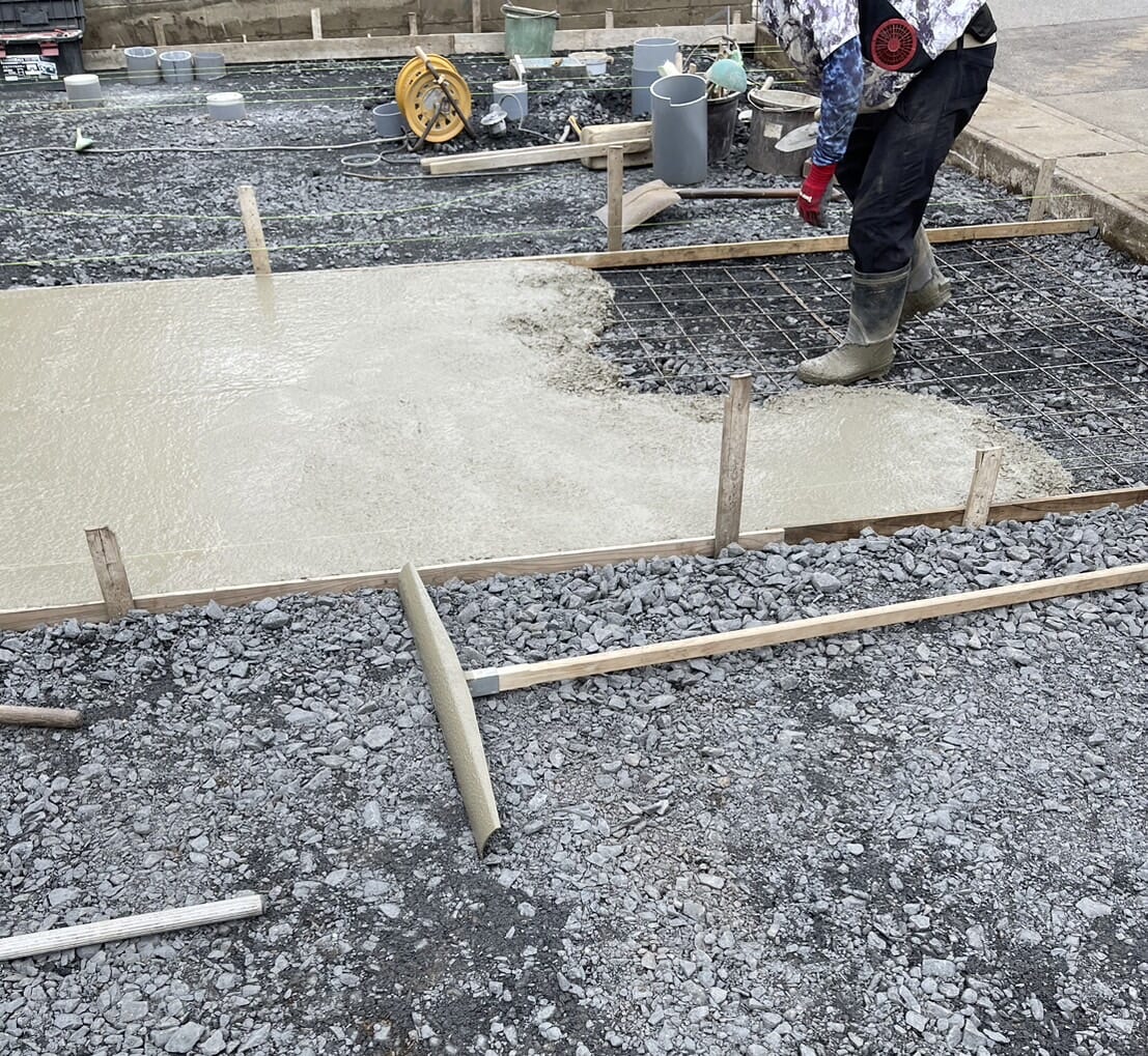 外構ING  アプローチインターロッキングの下地コンクリートです。
