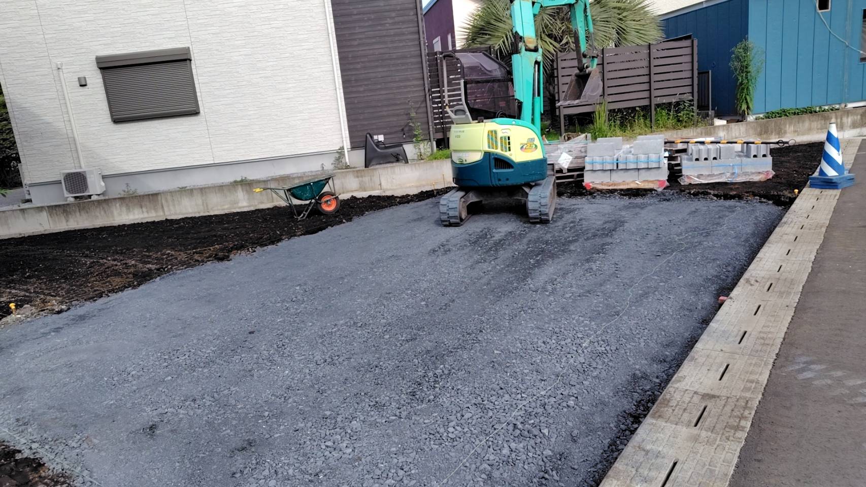 駐車場下地砕石入れ作業です。