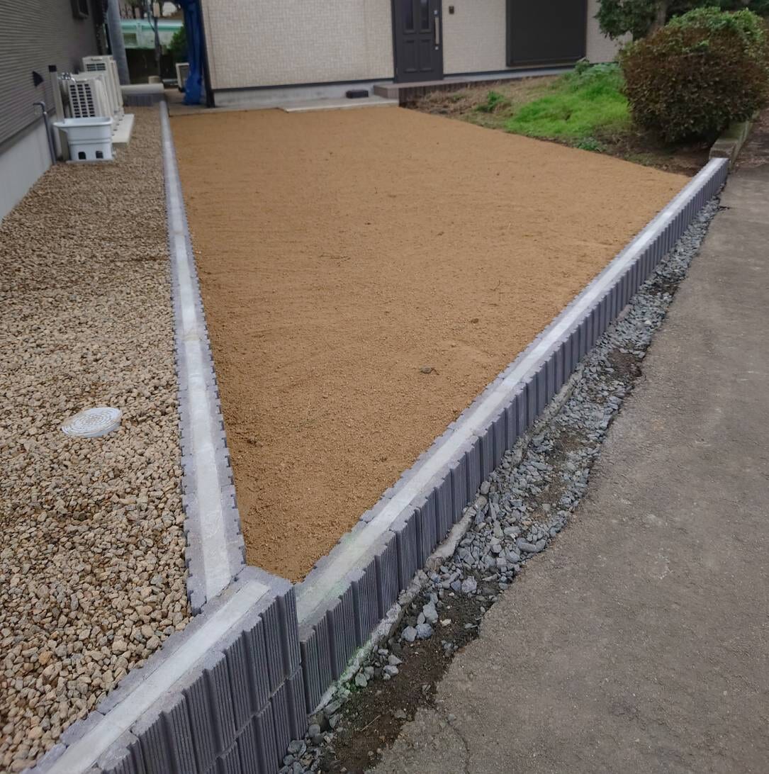 防草シート+チャート砕石と山砂敷きです。
