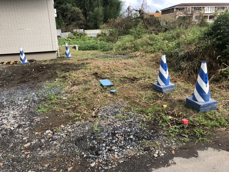 外構ING  お待たせ致しました外構工事着工となります。まずは境界側のブロック部分からの掘削作業となります。
