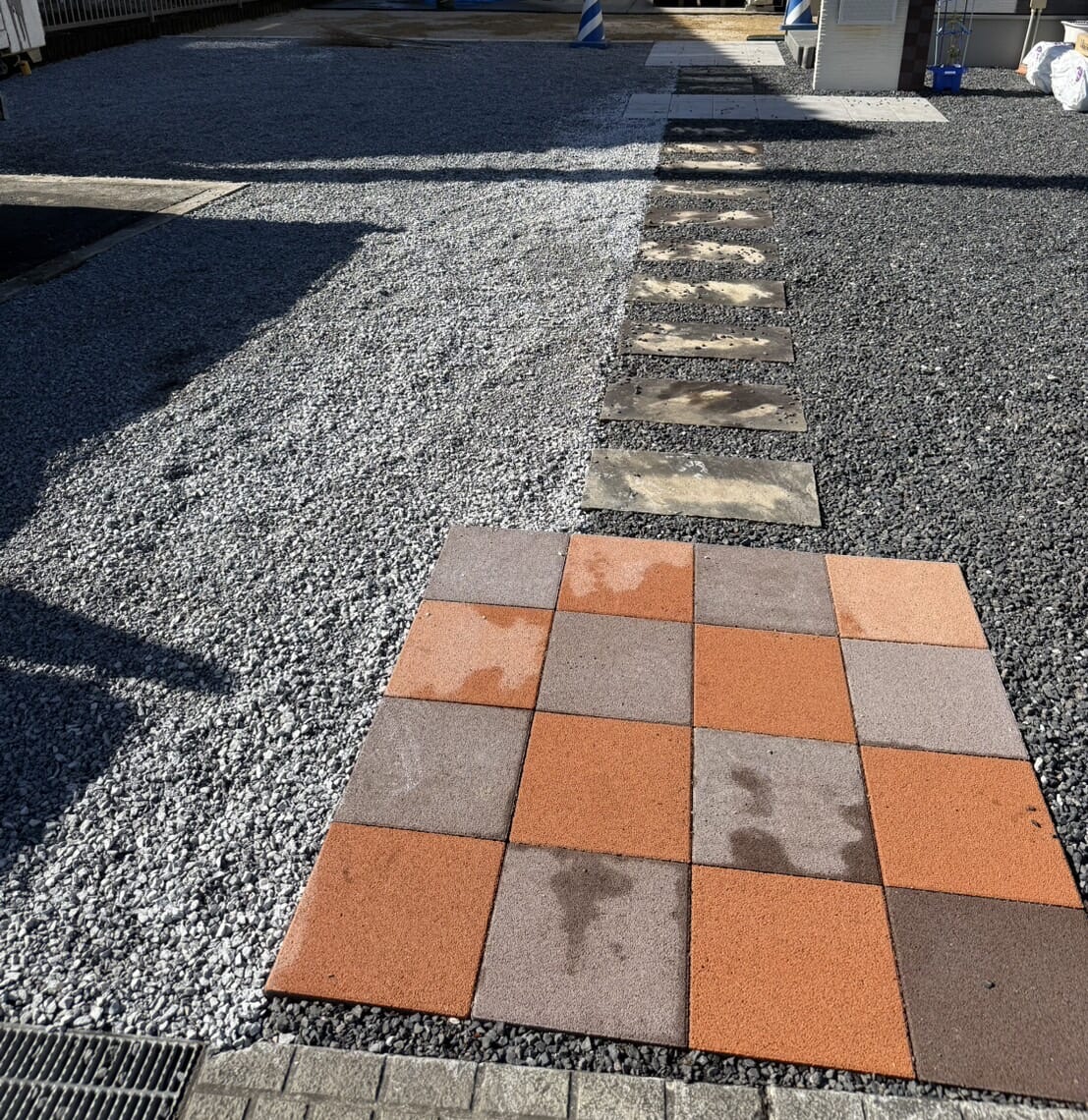 アプローチのインターロッキング施工中です。