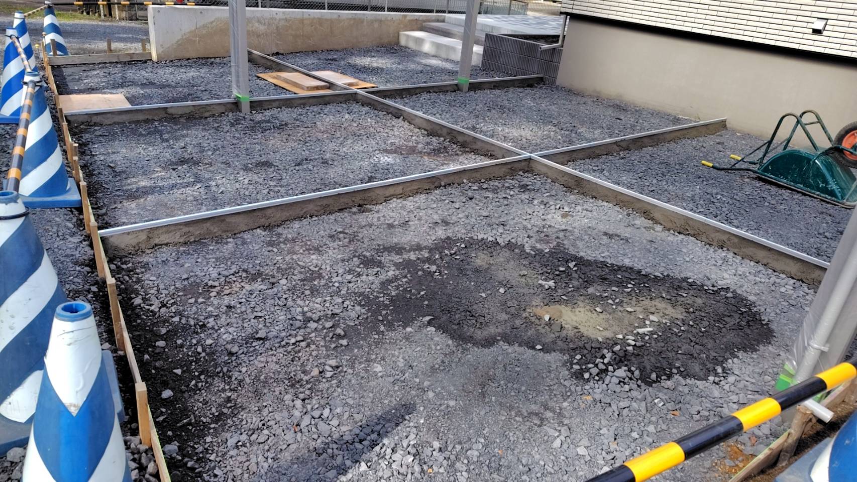 外構ING  伸縮目地の施工です。