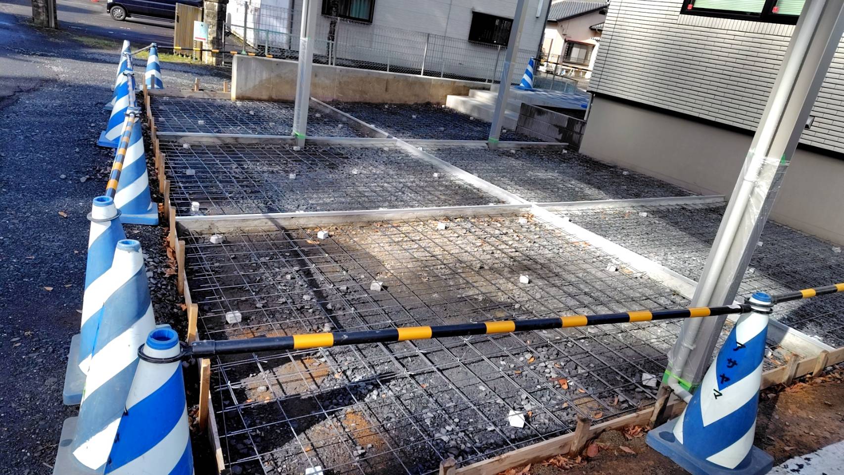 ワイヤーメッシュ敷き作業です。