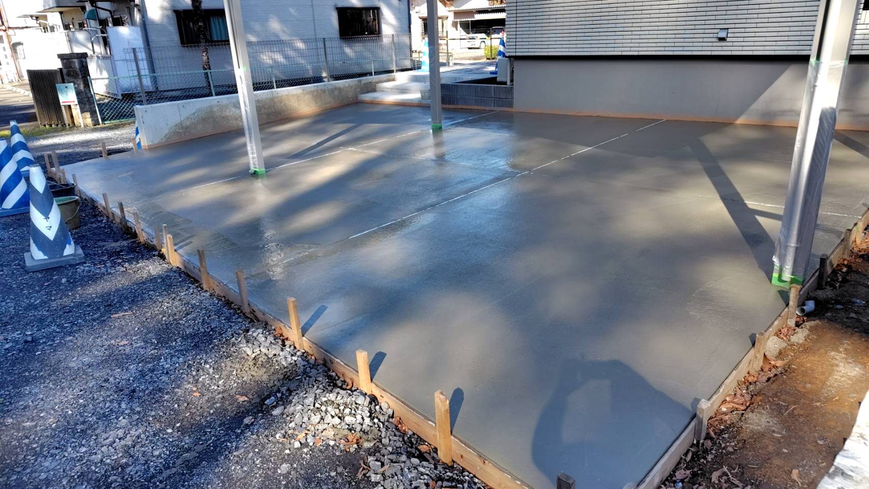 お客様へお車のご移動をお願い致しまして、駐車場ブロックの材料搬入作業となります。ご協力ありがとうございました。