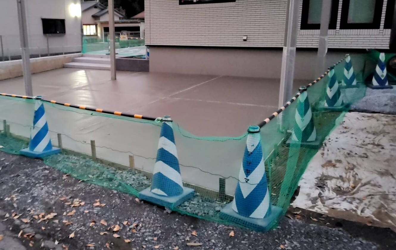 門袖の宅配ボックス及びポストの取付け後にブロック積み作業となります。