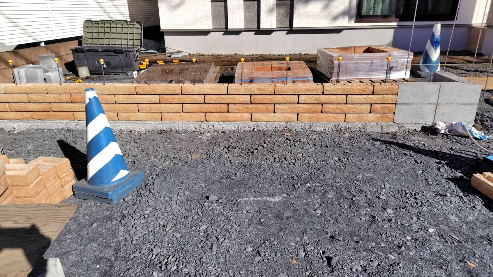 4段目のブロック積み作業です。あと3段積んでいきます。