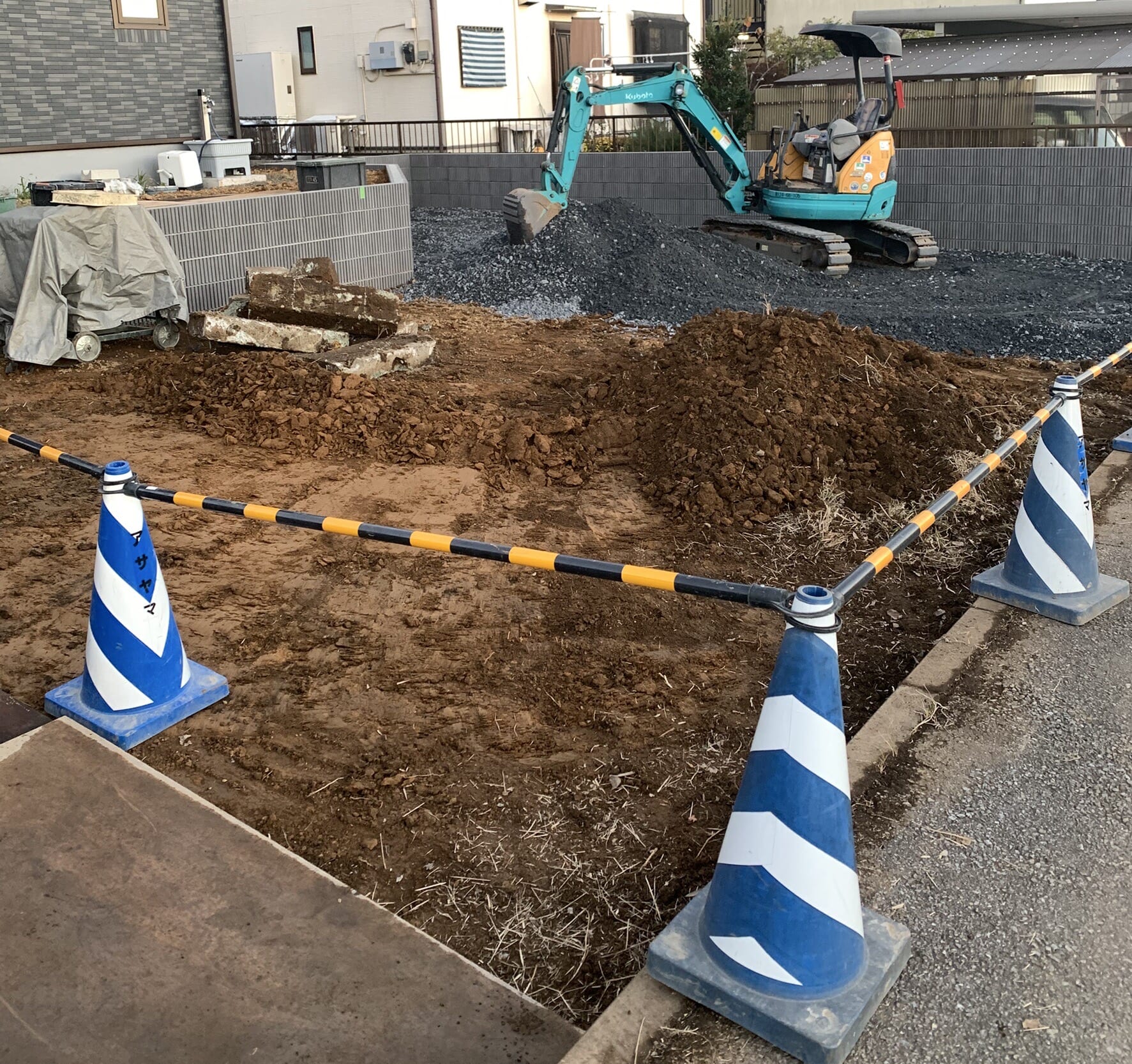 残土搬出と砕石入れです。
