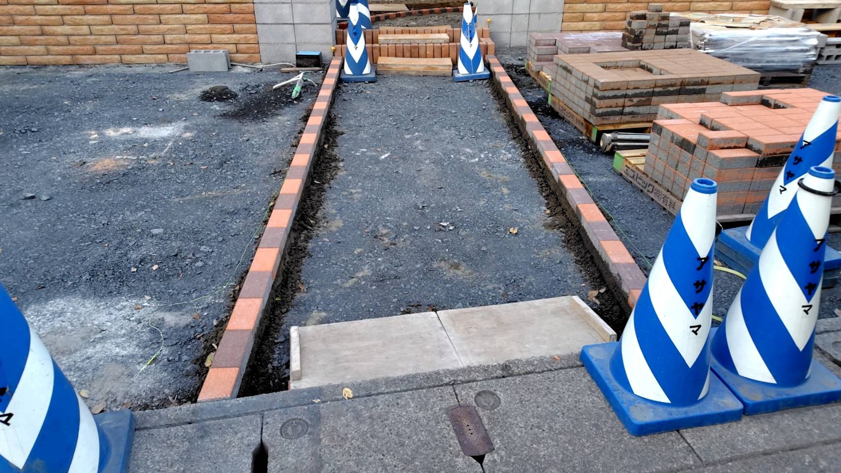 アプローチのインターロッキング見切りです。