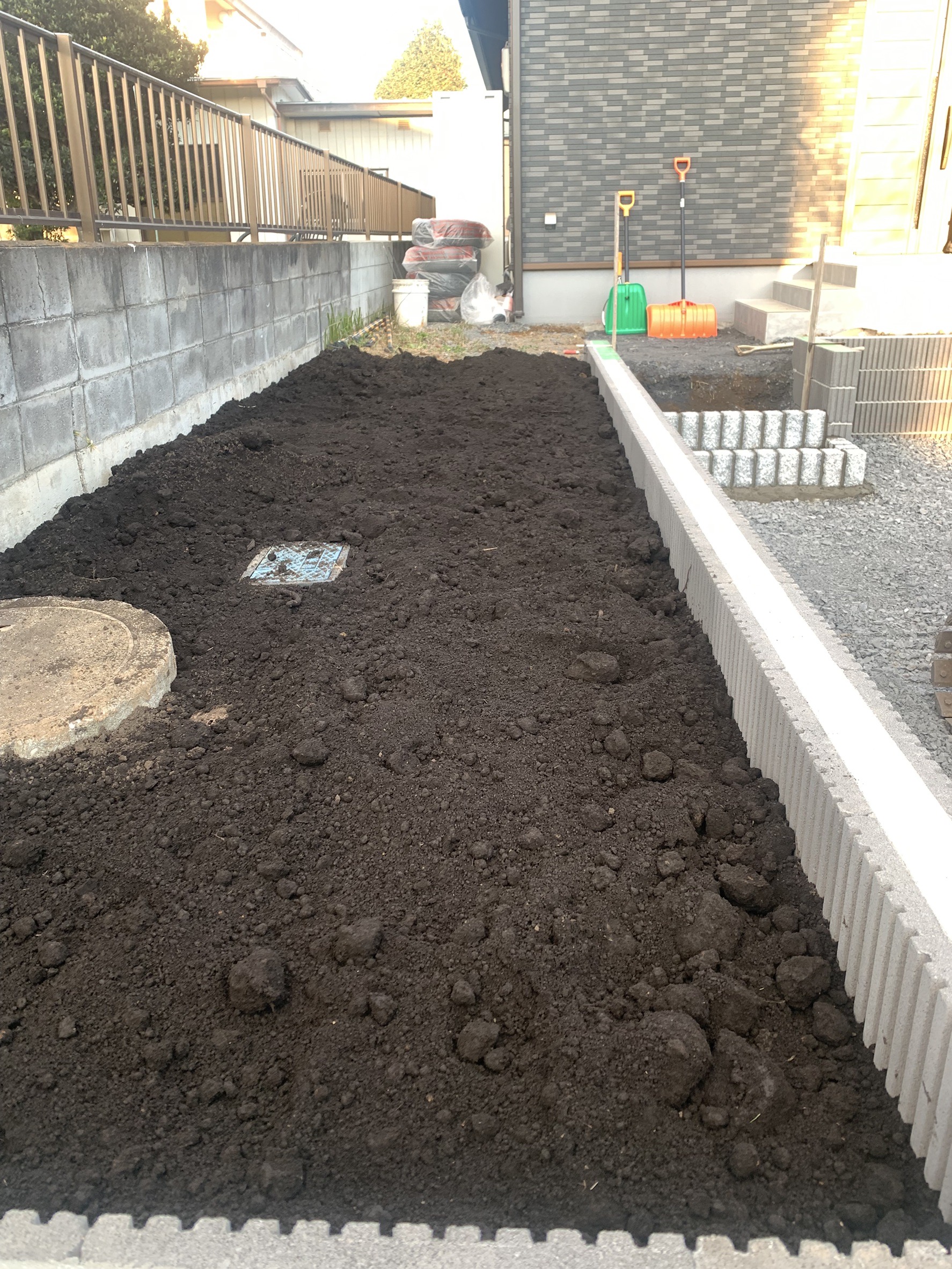 階段の立ち上がり部分の施工です。天然石を使用しています。