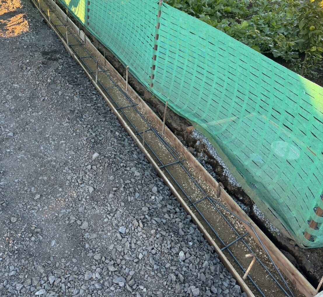 ブロック積み部のベースコンクリート型枠と鉄筋組みです。 | ホームエクステリア『アサヤマ』