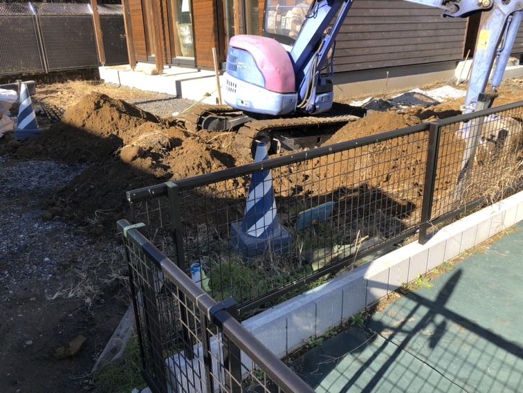外構ING  本日より工事着工となります。駐車場部分の掘削より作業開始となります。