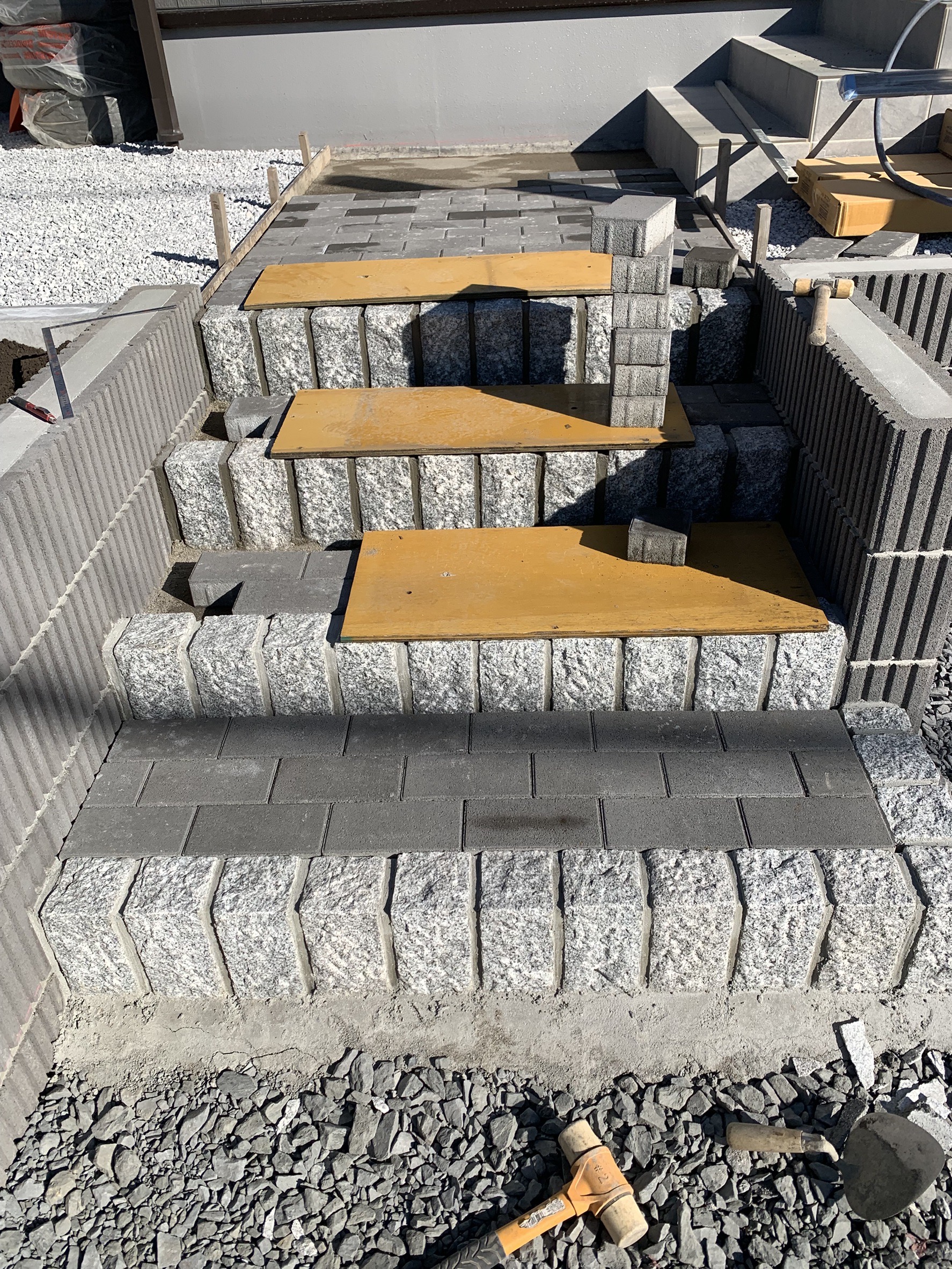 階段のインターロッキング施工です。