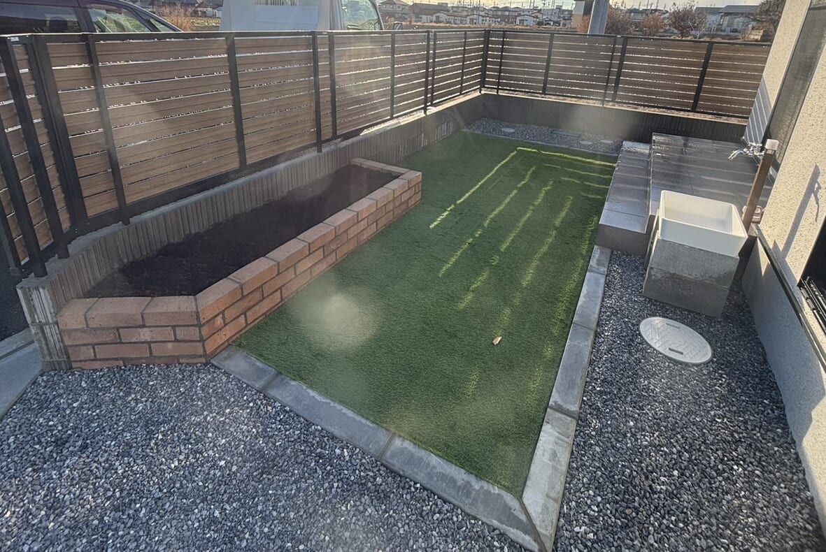 お庭の人工芝張りと駐車場の土間コンクリートの養生も終わりまして外構工事完了となります。 | ホームエクステリア『アサヤマ』