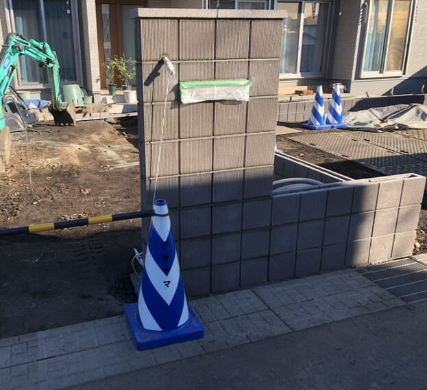 門袖ポストの取付けブロック積み作業となります。