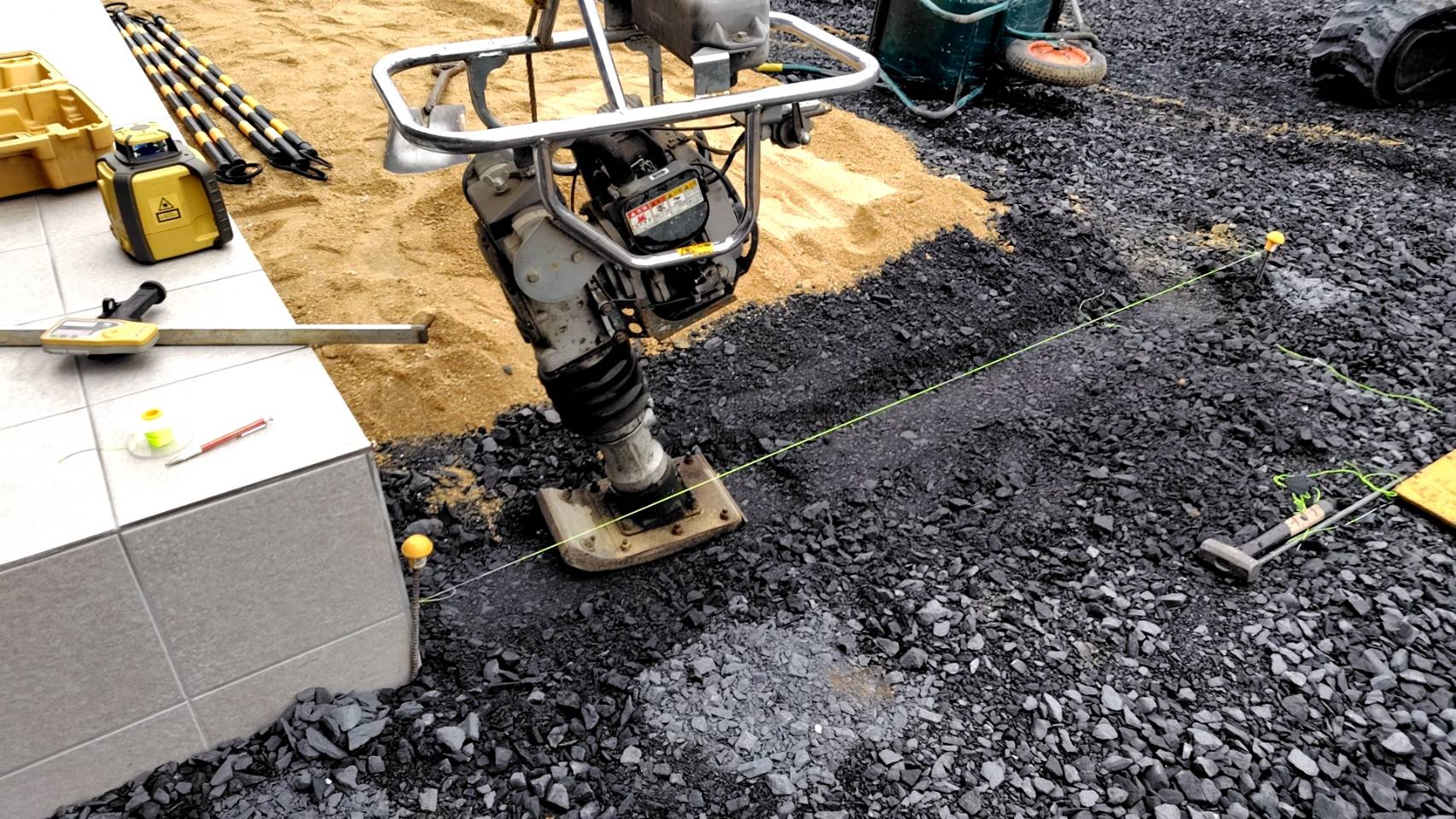 地先ブロック下地砕石の転圧です。