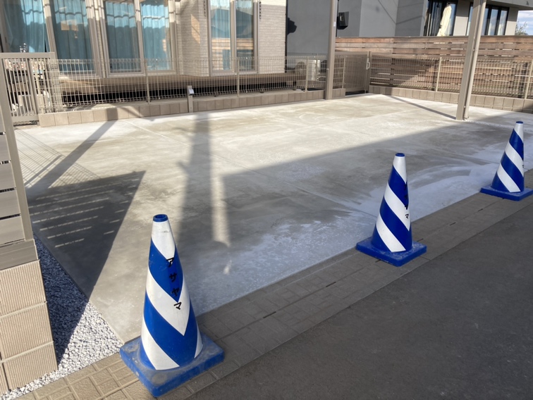 駐車場コンクリートの養生中です。