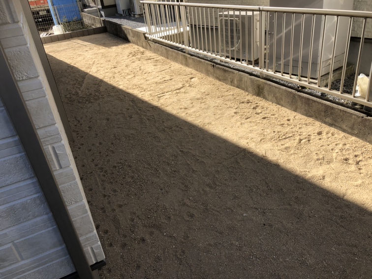 お庭の山砂の整地均し完了となります。