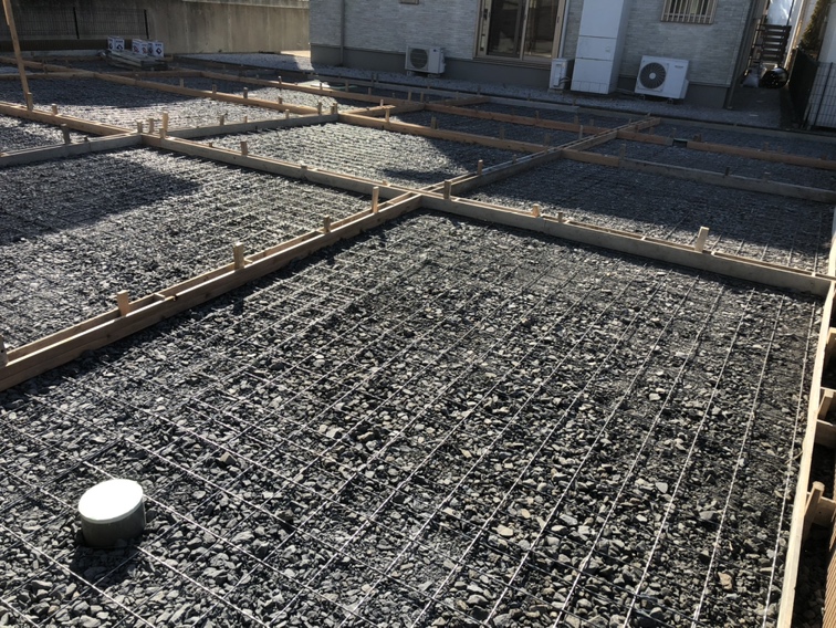 駐車場コンクリートのメッシュ筋敷きです。