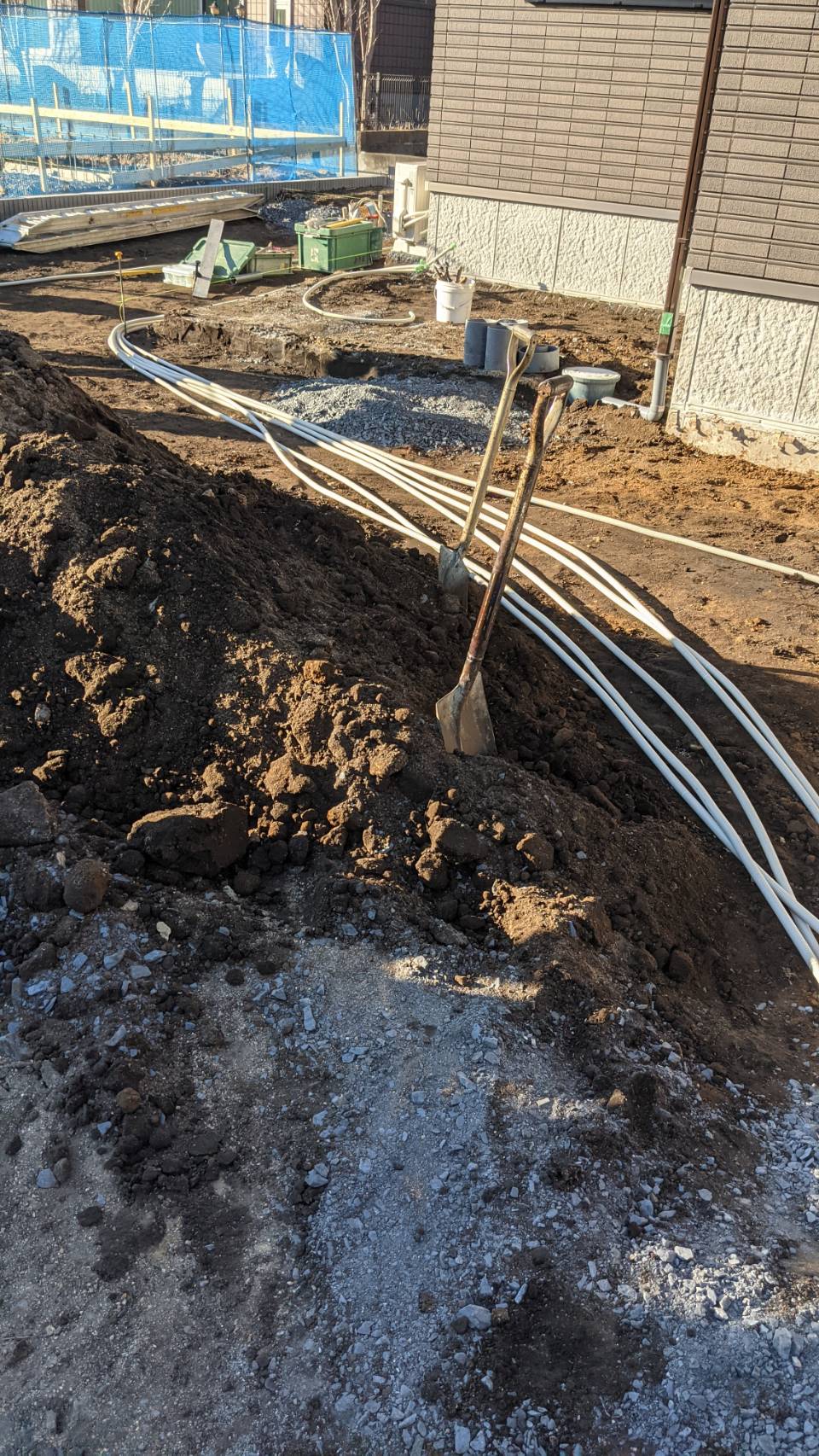 照明の配管埋設です。照明取り付けは後半ですが、管は初めに埋設します。