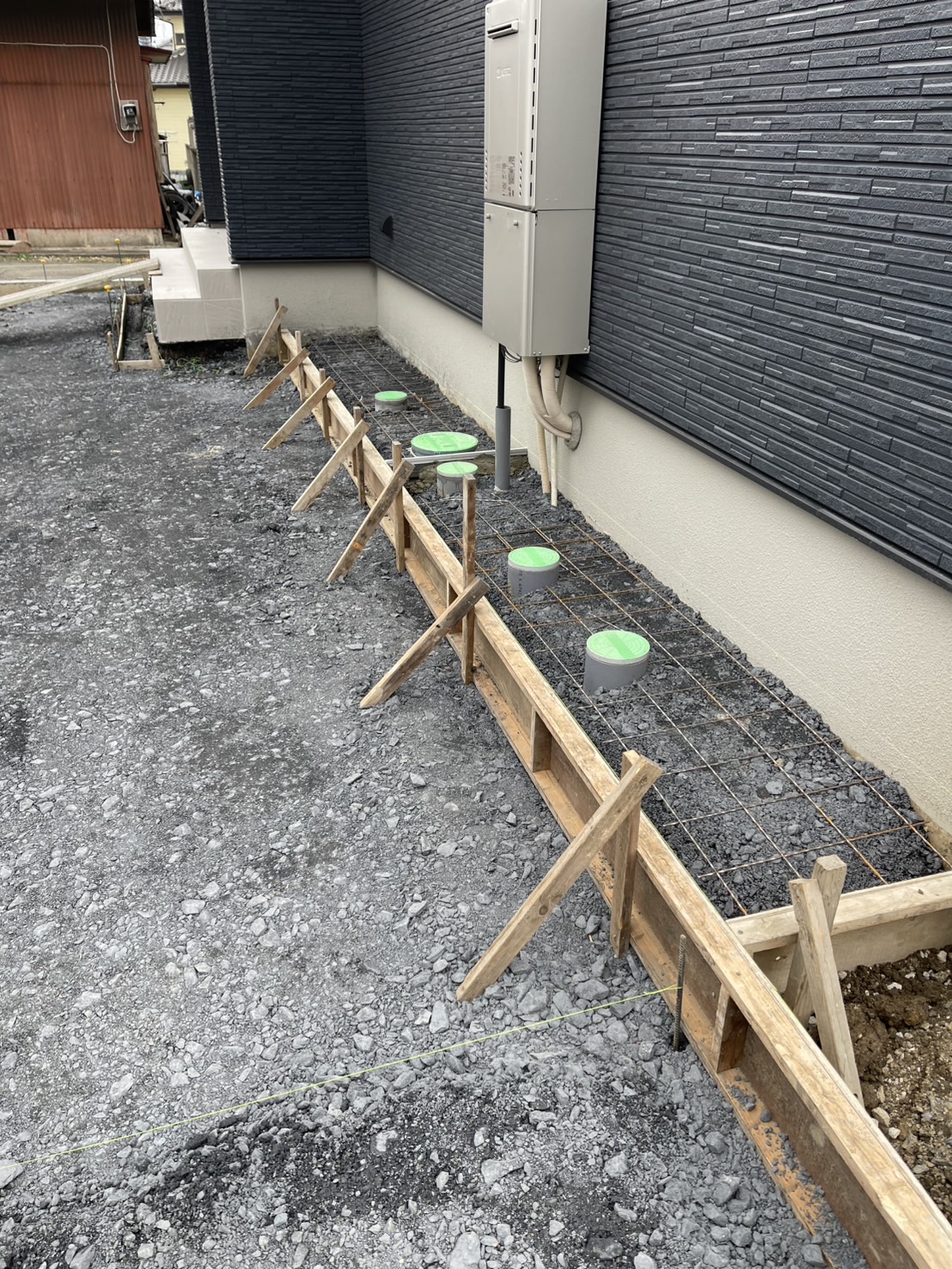 犬走りコンクリートの型枠組みです。
