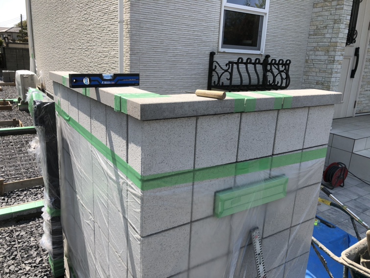 門袖笠木の取り付け作業となります。
