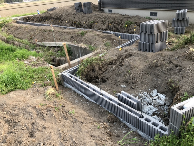 境界側のブロック積み作業となります。 | ホームエクステリア『アサヤマ』