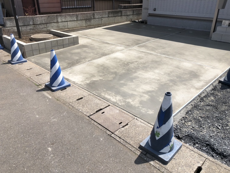 駐車場の土間コンクリートの養生となります。