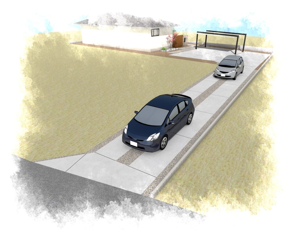 旗竿部分は水はけを考慮しタイヤの乗る部分のみコンクリートを打設します。