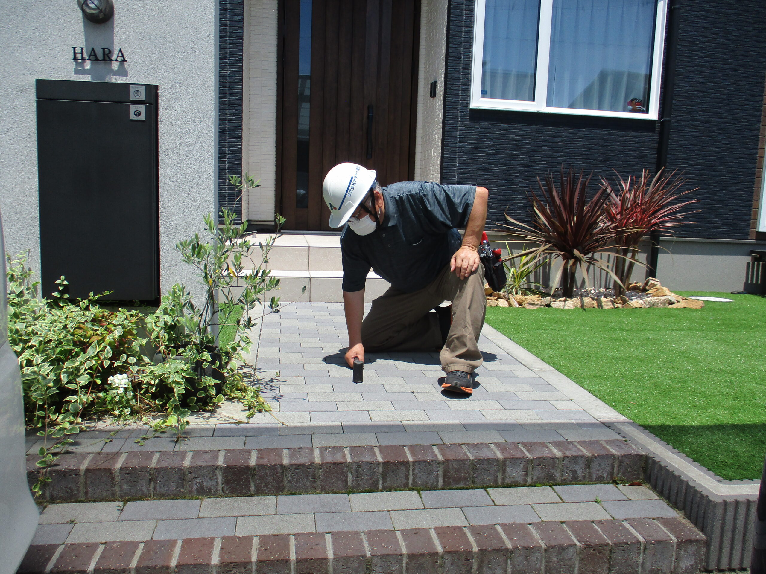アフター3年点検にお伺い致しました。 ※ご主人様 と 奥様が対応してくれました。 イナバ物置、門袖、スマート宅配ポスト、表札の水平度確認済み。 人工芝、6号砕石+防草シートの捲れ・破れ確認済み。 ネスカF カポート、ネスカミニ サイクルポート、マイティウッドフェンス、ハイグリッドフェンスの増締め済み。 土間コンクリート 伸縮目地、アプローチ(オールラウンドベイブ)、土留め(スマートC)、ステップ蹴り上げの打音検査済み。 ※点検結果の対応として、家の裏フェンスの止めネジ3箇所外れていたので、交換致しました。 駐車場のマイティウッドフェンス下部2枚、歪んでいたので(後日対応)交換致しました。 ※その他点検結果、特に問題ありませんせした。