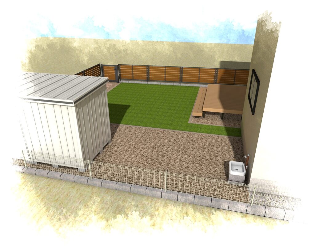 デッキや人工芝、目隠しフェンス、物置を主に施工します。