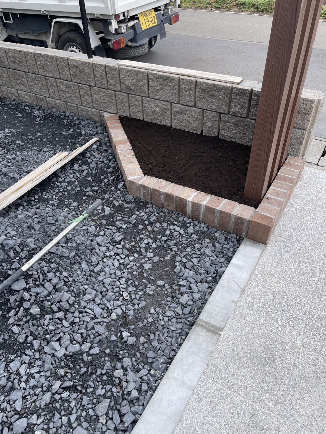 ブロック積みです。