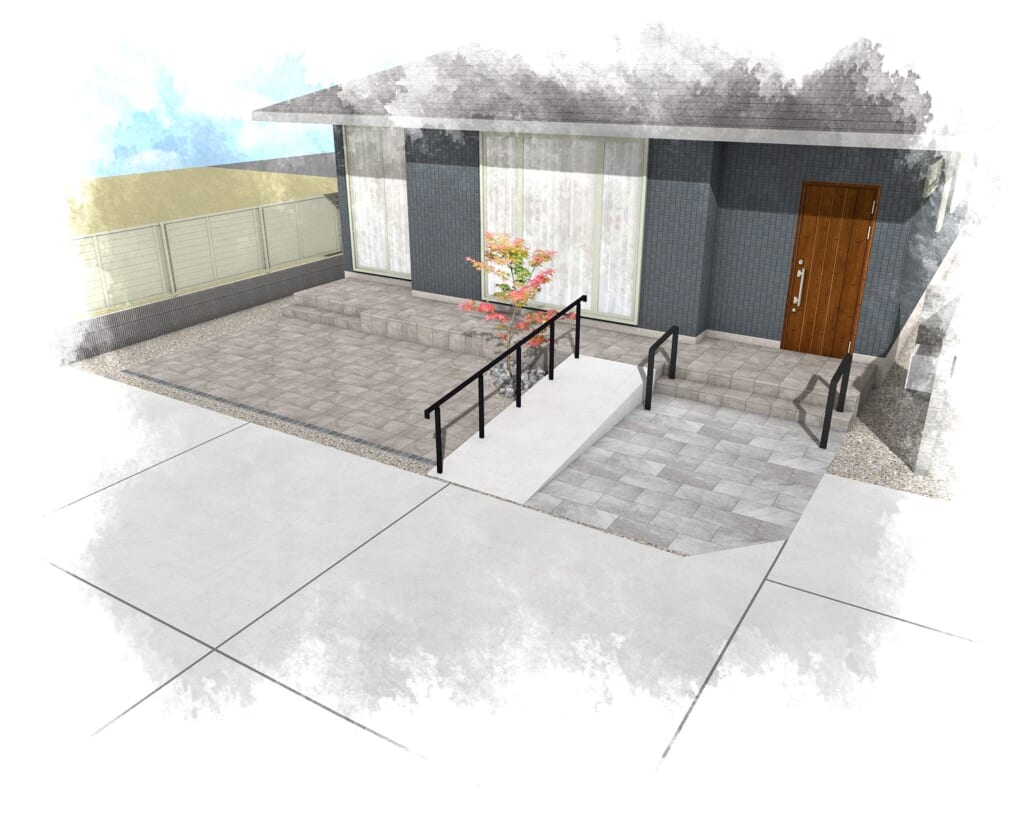 お庭もお手入れを最小限にしタイル貼りを施工します