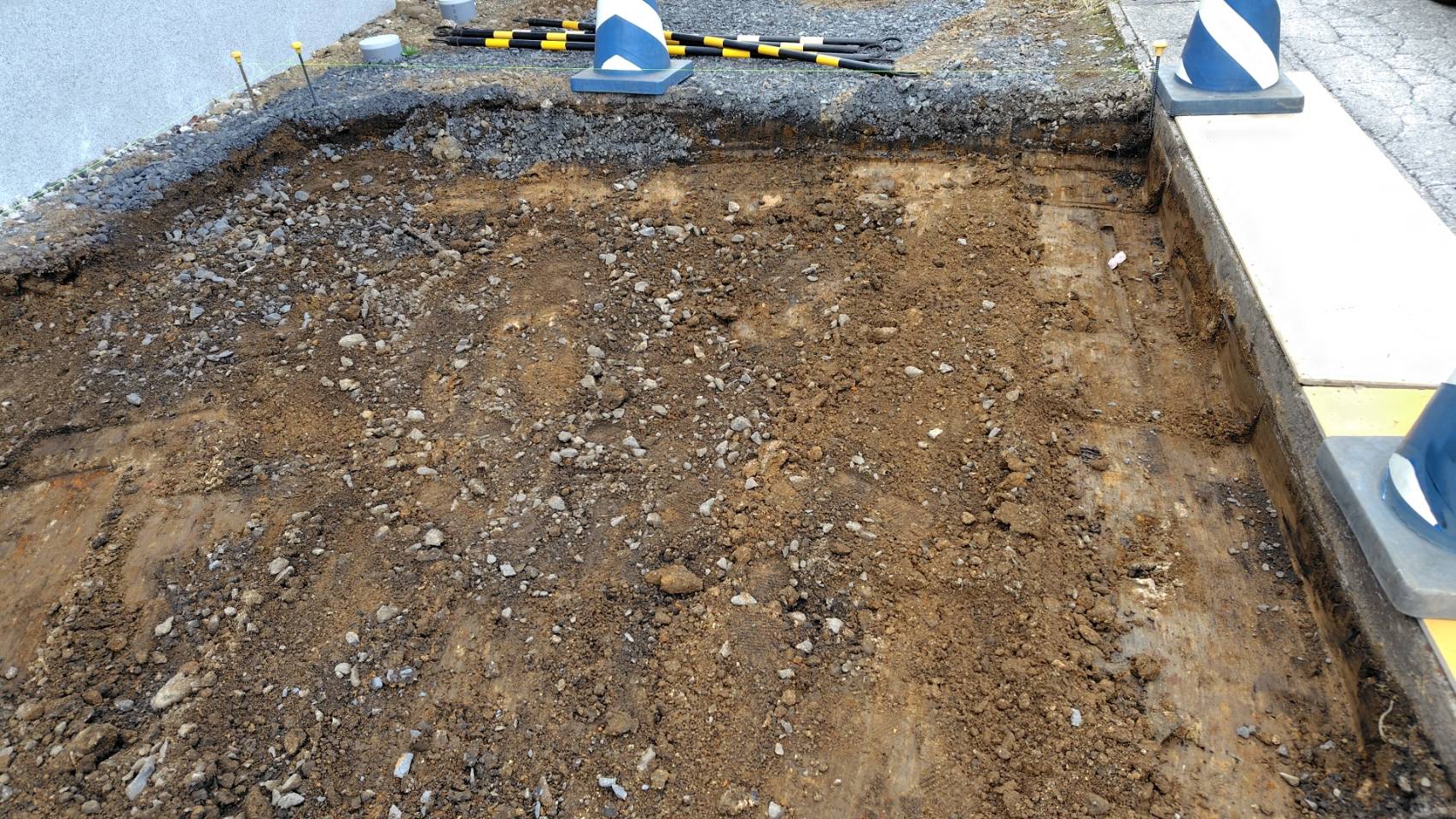 ブロック積み部のベース下地砕石転圧と鉄筋組みです。