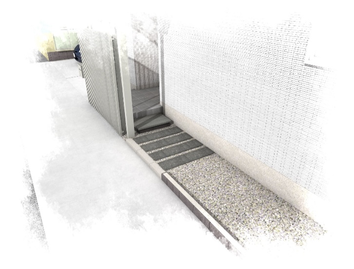 階段の追加、自転車スペースの使い勝手を良くする工事です。また目隠しフェンスも延長します。