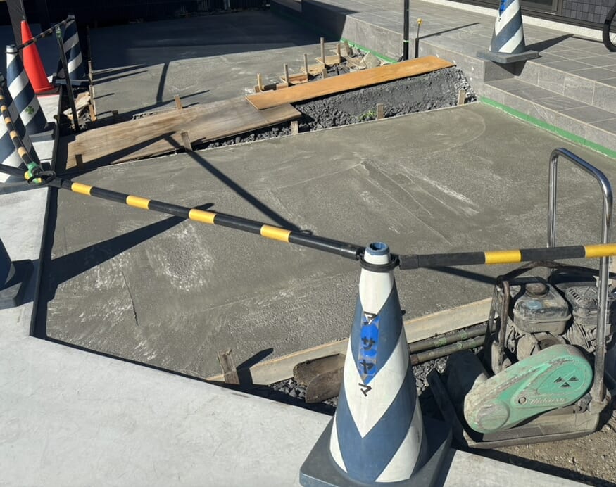 タイル下地コンクリート打設後の養生となります。 | ホームエクステリア『アサヤマ』