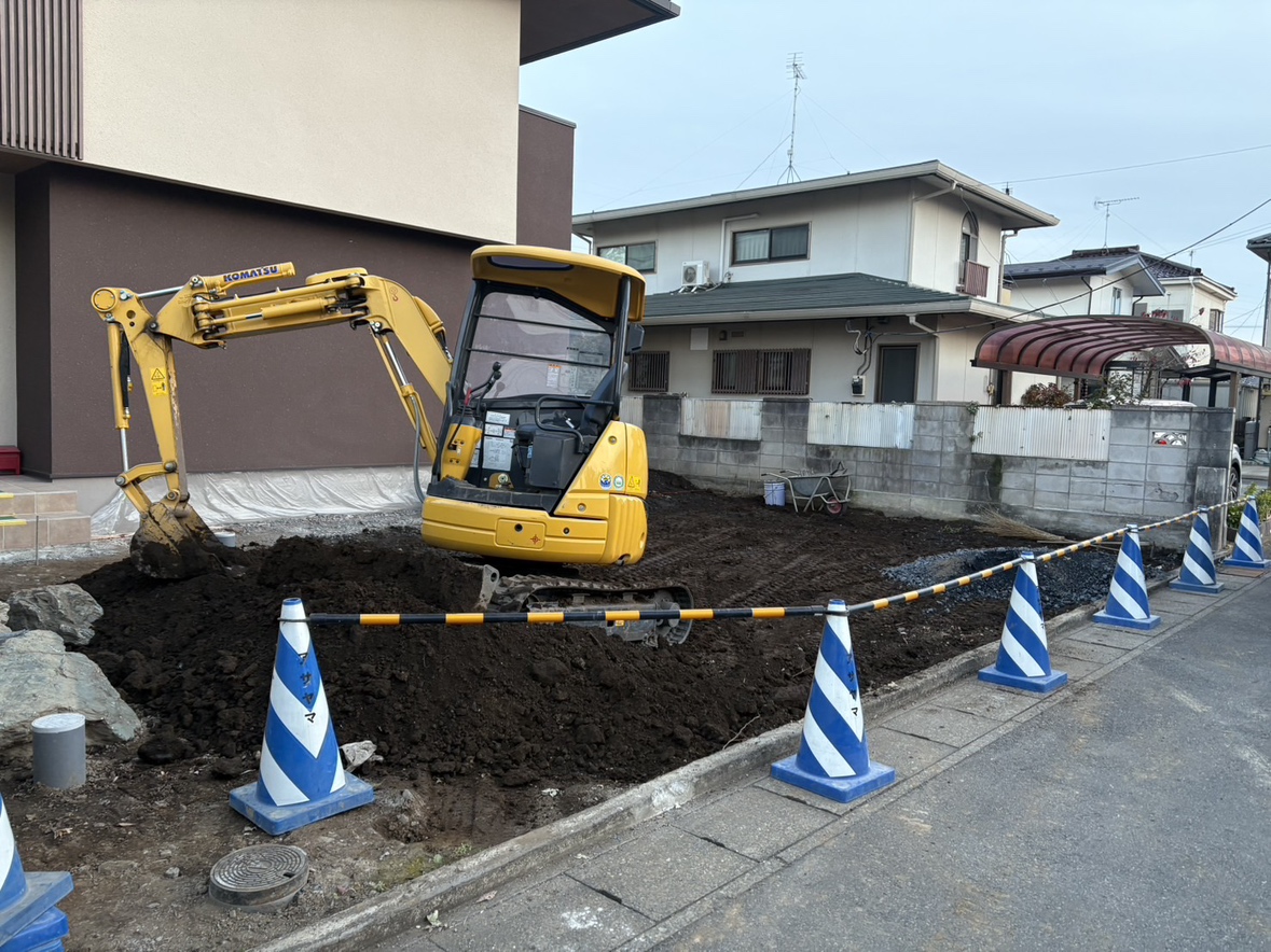 駐車場部分の掘削作業となります。