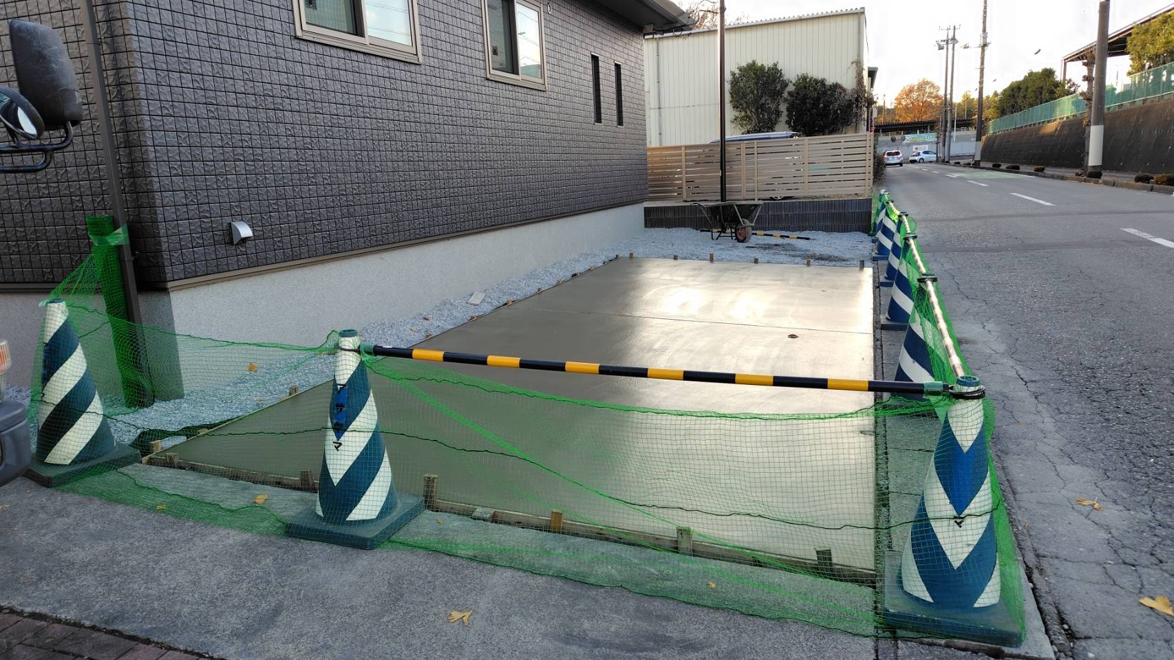 駐車場のコンクリートを打設作業後に動物避けのネットを張りましてコンクリートの養生となります。 | ホームエクステリア『アサヤマ』